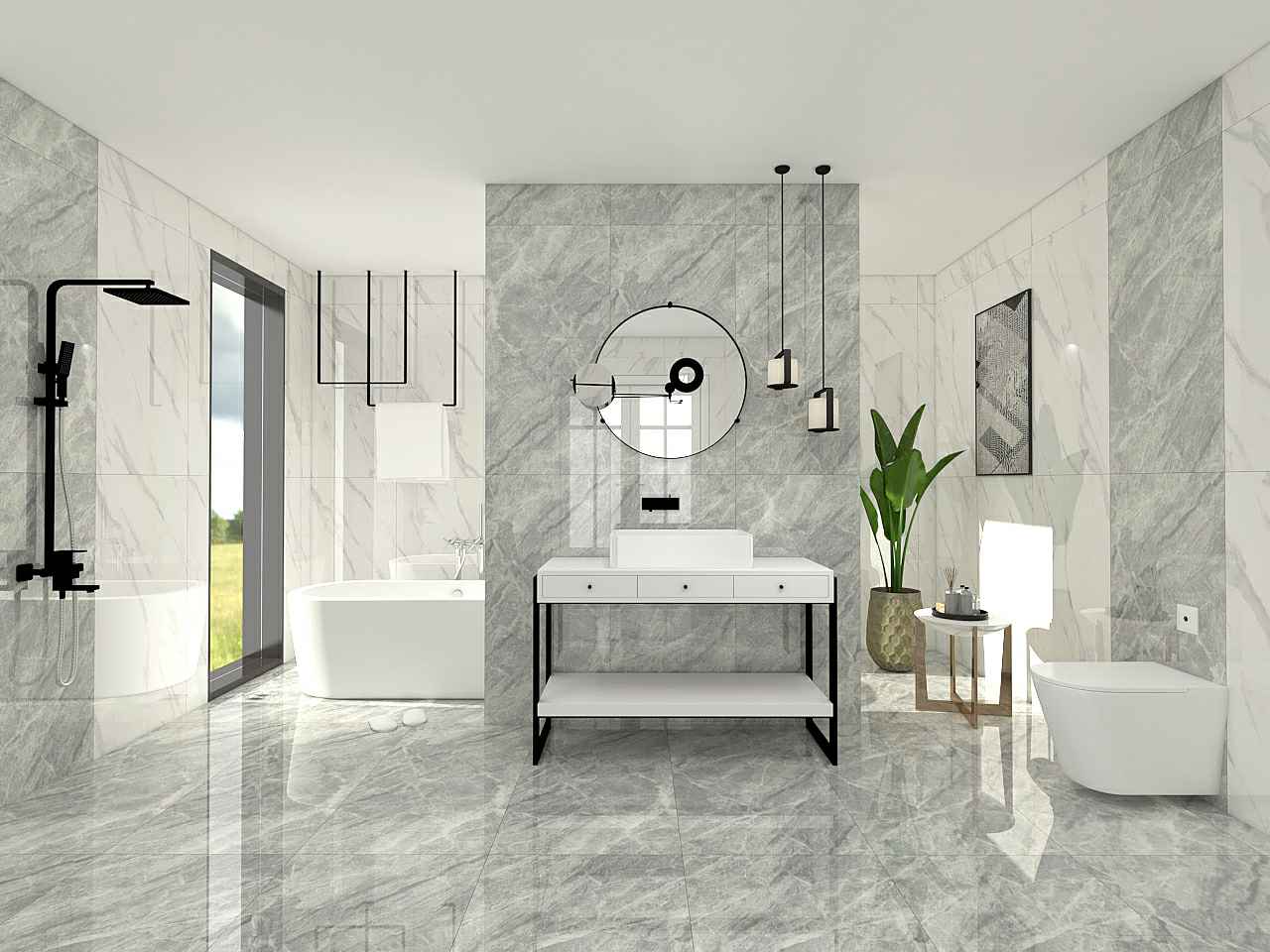 产品体验星河大规格中板系列通体大理石瓷砖艺术内墙砖VR体验馆勃朗印象(金刚石)